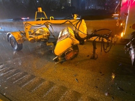 On January 8, 2026, at approximately 7:34 p.m., an ISP Trooper was pulled over on the left shoulder of I-88 eastbound near milepost 135 with their emergency lights activated investigating a single vehicle rollover crash. A Tollway Maintenance truck was also on scene positioned behind the ISP squad car assisting with recovery of the crashed vehicle. A black Acura passenger car failed to slow down while negotiating a curve and spun out, striking both the Tollway Maintenance truck’s towed unit and the passenger side of the Trooper’s squad car. Both vehicles sustained minor damage. The Trooper and Tollway Maintenance driver were each inside of their vehicles at the time of the crash, but reported no injuries. The driver of the Acura was transported to an area hospital with injuries and was issued several traffic citations, including a Scott’s Law citation. The investigation is ongoing.